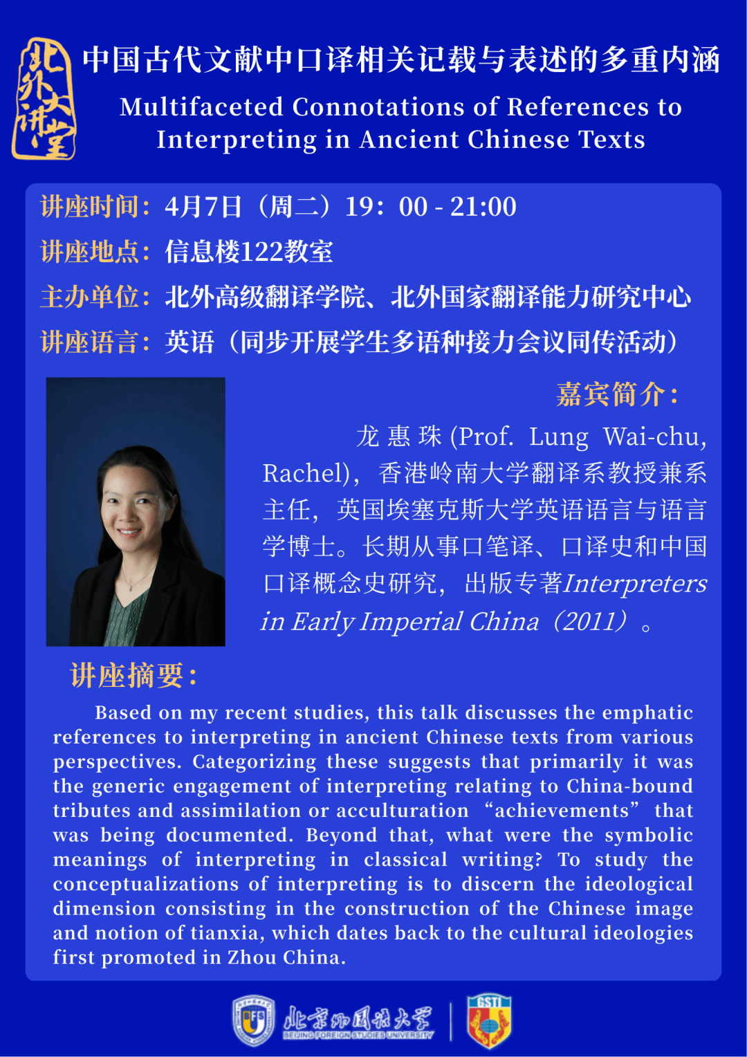 【讲座预告】龙惠珠教授——中国古代文献中口译相关记载与表述的多重内涵