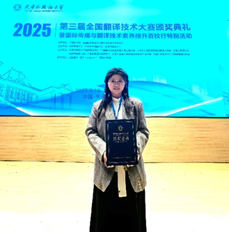 我院始终注重翻译技术与语言服务的融合创新,积极鼓励学生参与高水平专业赛事,以赛促学、以学促用。肖薇同学的优异表现,充分体现了学院在培养高素质、复合型翻译人才方面的成果。未来,学院将继续支持学生在技术赋能的环境中拓展国际视野、提升实践能力,为讲好中国故事、推动中外交流作出更大贡献。